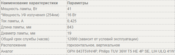 Ультрафиолетовая бактерицидная лампа GPH 843T5L/4 41W 0,425A LightBest