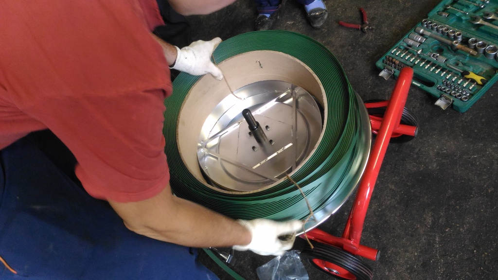 Ленторазматыватель H-84 обеспечивает хранение и транспортировку бобины с ПЭТ и металлической лентой по территории участка . Для перемещения у ленторазматывателя Н-84 имеются два колеса. В рабочем состоянии он стоит на 4-х опарах. Оцинкованный барабан тележки имеет фиксатор для ленты, который предотвращает её самопроизвольное разматывание. На ленторазматывателе есть железный ящик для ручного инструмента.