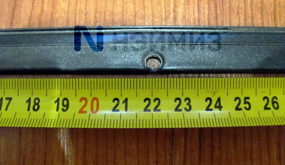 Длина ножа 440 мм. Расстояния от края до центров отверстий: 55, 220, 385 мм