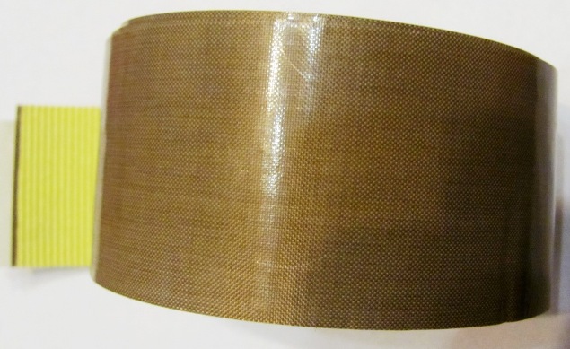 Тефлоновая лента с клеем шириной 50 мм толщина 80 и 130 мкм. Применяется в отрезных ножах термоупаковщиков и запайщиков пакетов.